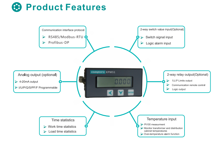 KPM51 is single-phase multifunction smartpower meters, it is a collection of telemetry, remote communications, remote control, transmitter ,it withfeature-rich, cost-effective, can be independently used in different occasions.