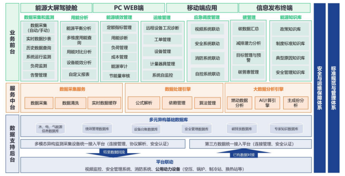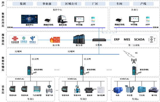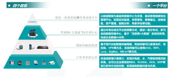 智慧能碳管理平台,融合“了物联网+互联网+大数据”等技术,对企业水、电、气、冷、热等能源使用状况管理,及现场压力、温湿度、设备运行健康度等参数实行集中监测、管理和分散控制,实现不同场景下的能源及碳排放监测、分析、管理、评估和预测,为企业的节能降碳、精益能效管理提供数字化平台。